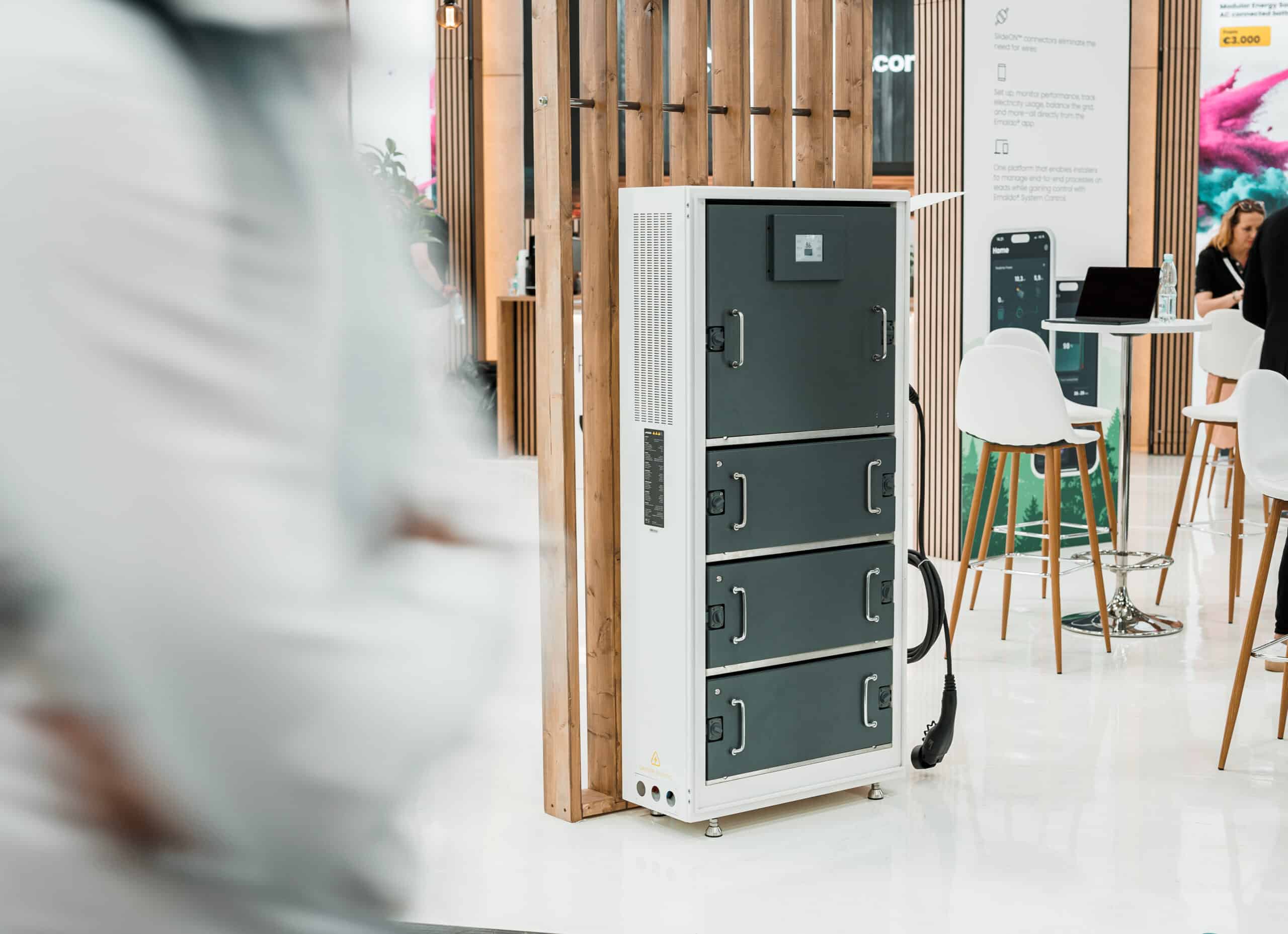 Emaldo® Expansion Cabinet -laajennuskaapin avulla voit laajentaa Emaldo® Power Core- tai Emaldo® Power Store -järjestelmää viidellä akkumoduulilla ja lisätä sen akkukapasiteettia jopa 25,6 kWh:iin.